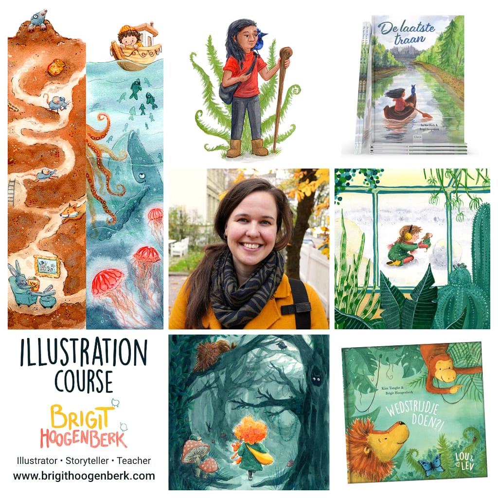 Brigit Hoogenberk will guide you through every step of the process. With extensive experience in teaching and children’s book illustration, she knows how to bring stories to life! Brigit has illustrated several books in the Netherlands, and she is very excited to share her knowledge and passion with you. Find more of Brigit her work on her Portfolio page or on instagram @brgt